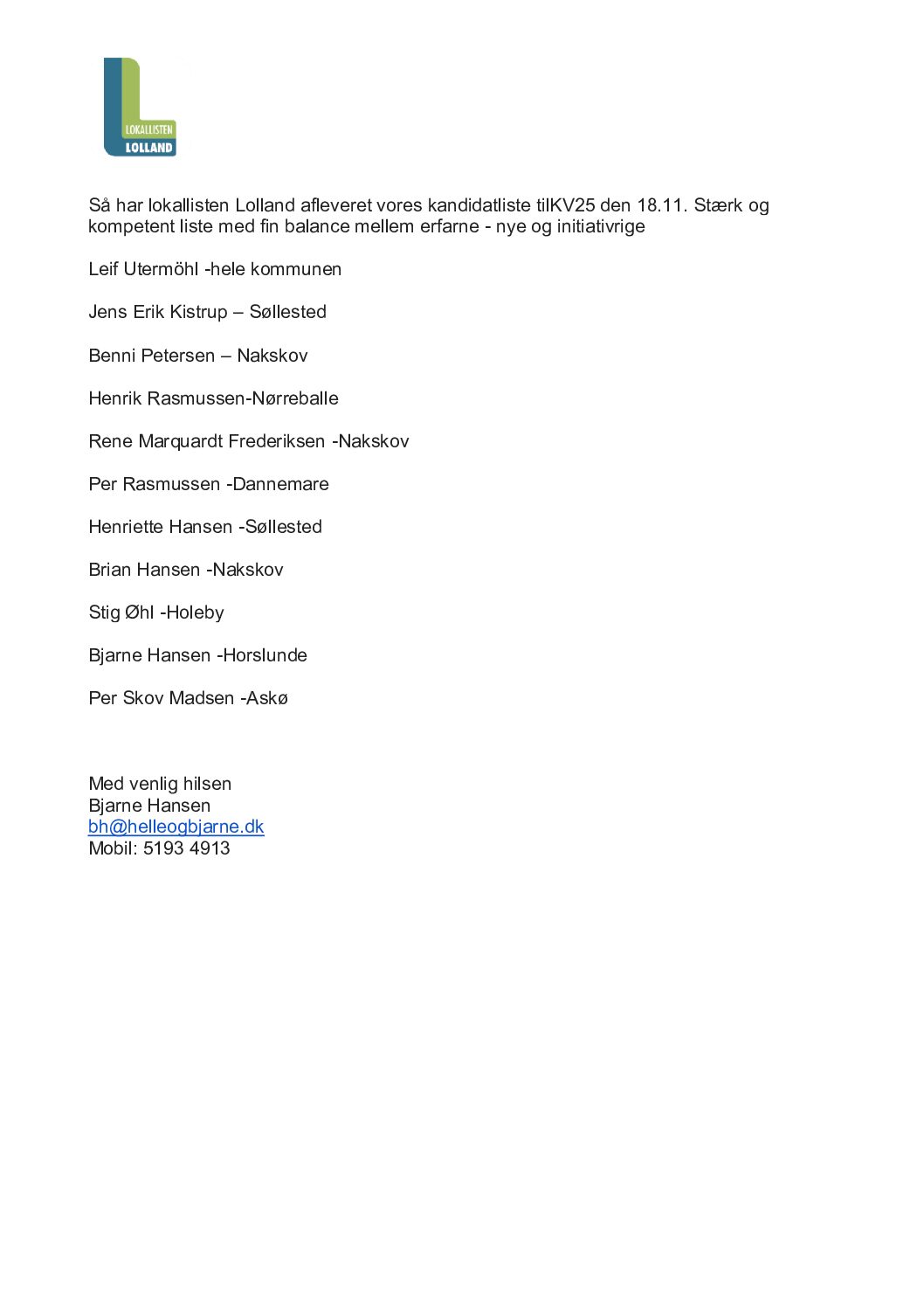 ForsideLokallisten LollandBliv medlemFormanden informererBrevpapir til lokallistens medlemmer MASTER formanden informerer