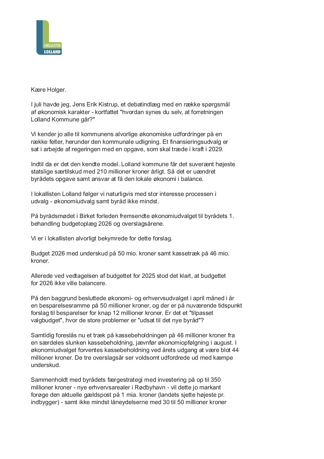 Kære Holger